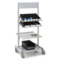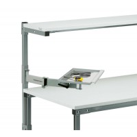 Oppbygging i bakkant av bordet med hyller, perforerte plater, oppheng for bokser, el-skinner, samt muligheter for overhengende LED lys, samt sidelys om man skulle ha behov for det. Skuffer og hurtser, pc-holder, tastatur- og skjermholdere er mulig å montere fast på bordene som gjør at arbeidsplassen kan tilpasses enhver som har sitt arbeide ved bordet.