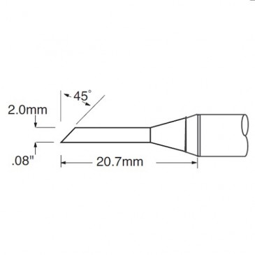 2.0mm hov spiss for "drag soldering", 45º, "Easy access"