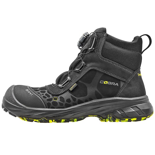 Sievi Cobra GT Roller+ S7 er en sporty vernetøvel i GoreTex med tåhette i komposittmateriale og spikertrampvern i stål. De er utviklet med en utmerket passform, markedets mest avanserte støtdemping og utmerket grep for spesielt krevende forhold. Verneskoen har FlexEnergy® yttersåle, Dual Comfort innersåle, brukervennlig BOA® Fit System, og en bred lest som er velegnet til den skandinaviske foten. Vernestøvelen har memory foam ankelbeskyttelse.