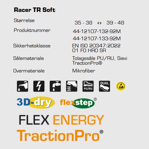 Racer TR Soft er en yrkessko med snøring og overdel i pustende og slitesterk mikrofiber.