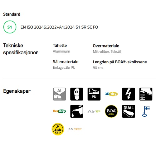 - Skoene leveres med 3D-dry fôr som fjerner fukt fra foten og ut av arbeidsskoene
